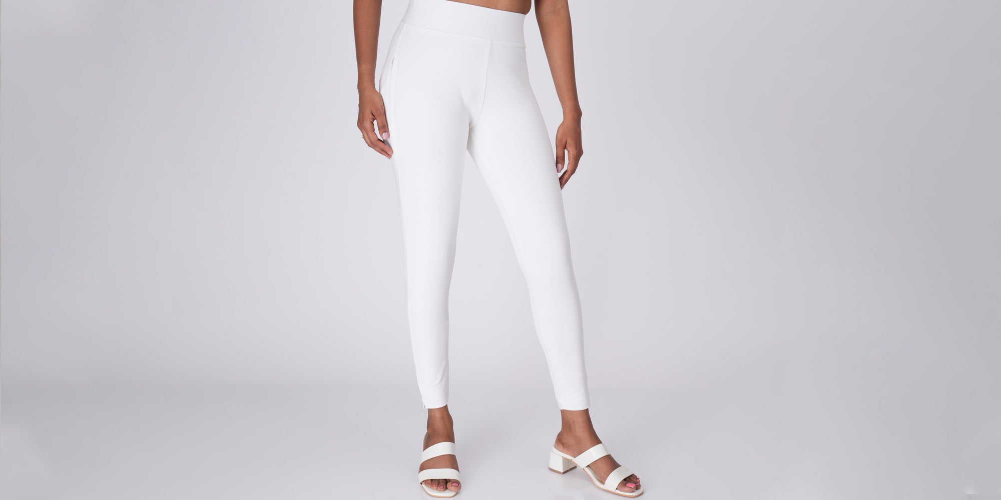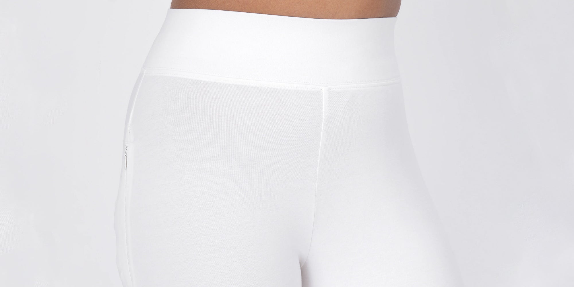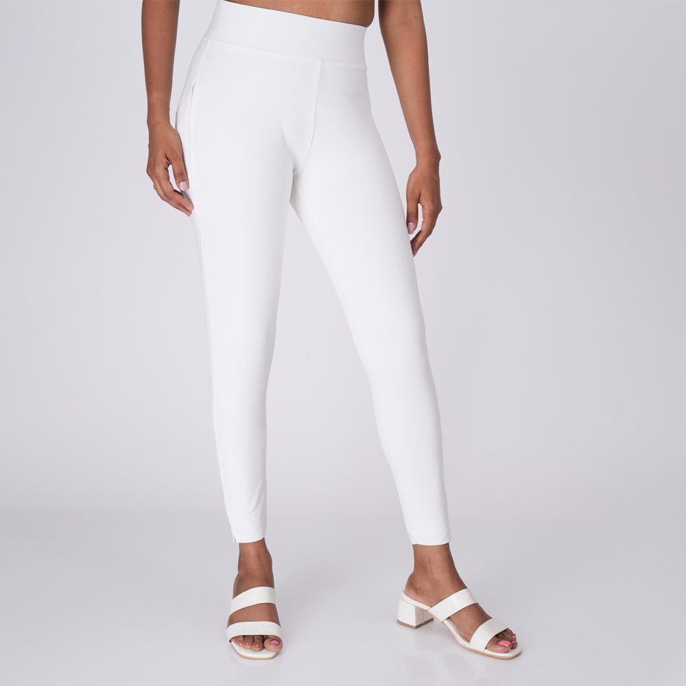 White solid full-length leggings, gives a seamless visual appeal with a Flexifit.