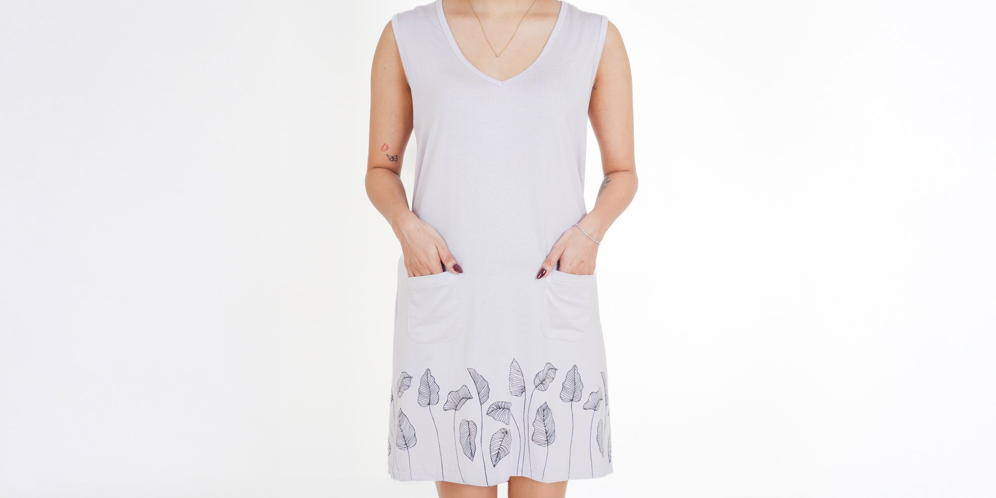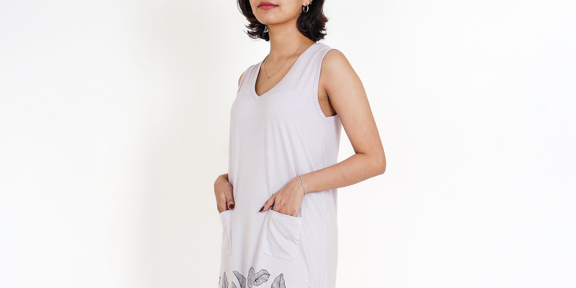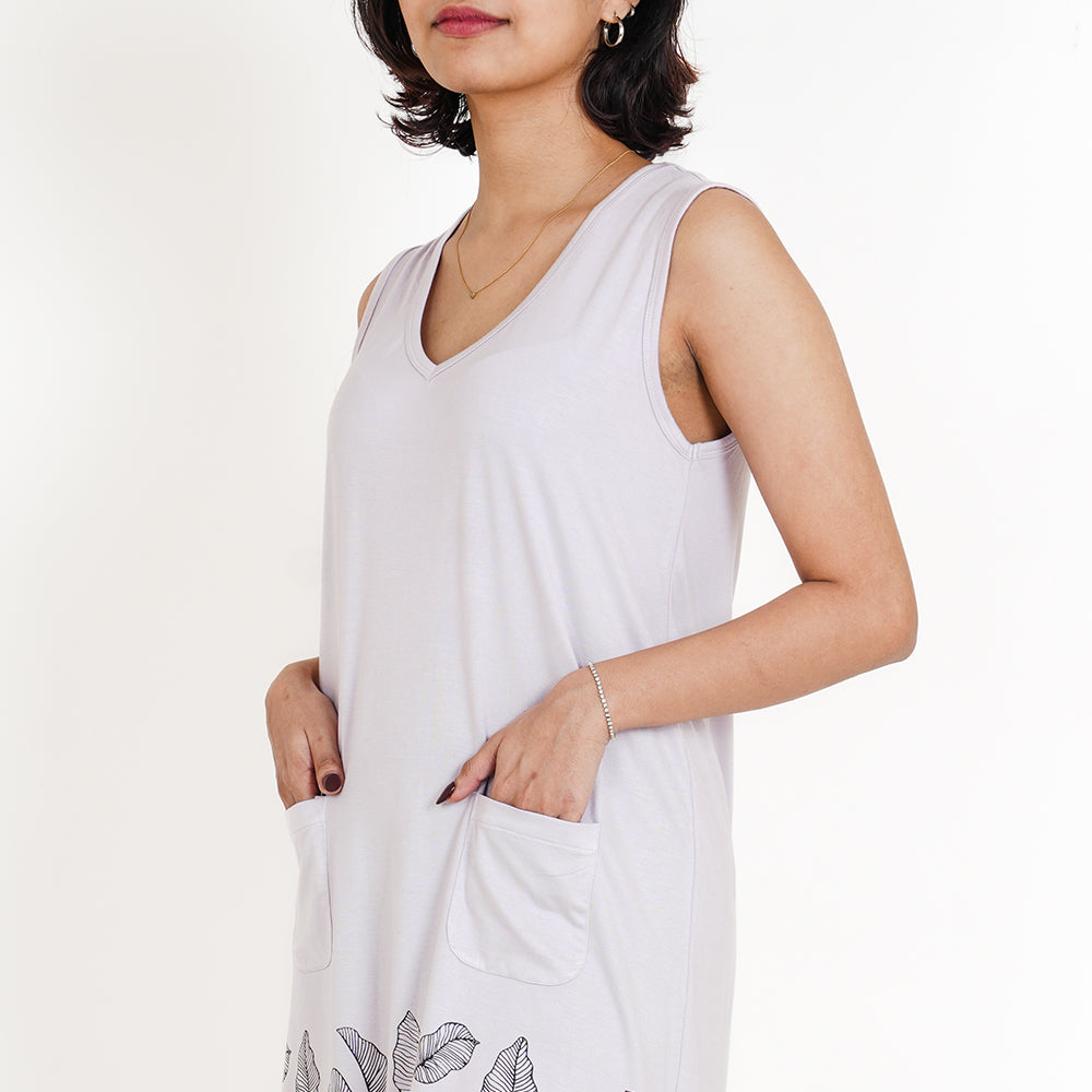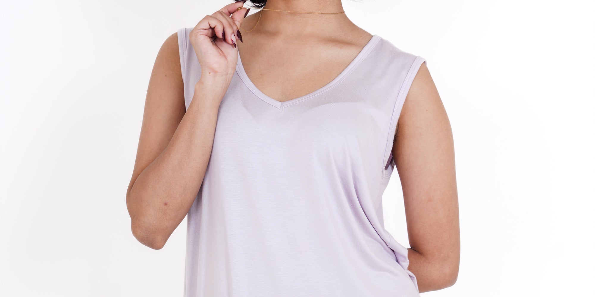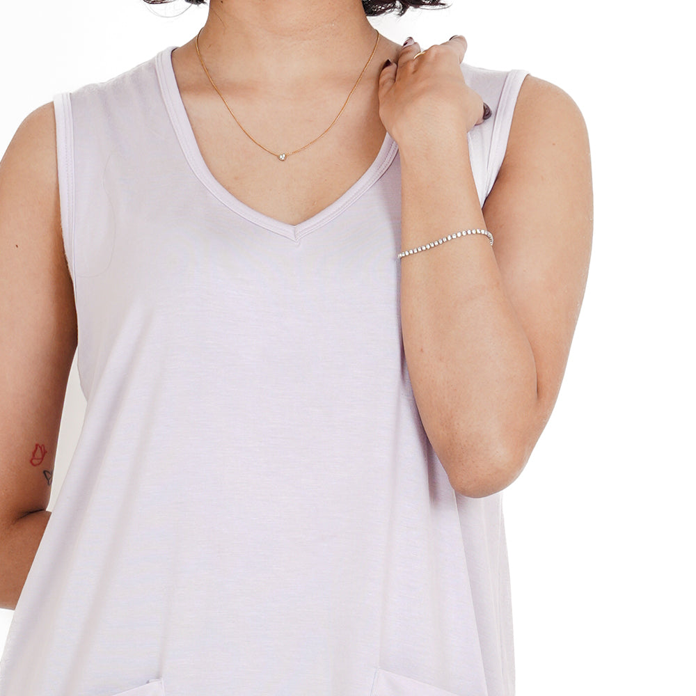With a relaxed curved V-neck and sleeveless design, this sleep tee is perfect for lazy nights and laid-back days. Plus, the two front pockets are there for you to stash your essentials in style. Whether you’re winding down for bed or just chilling around the house, this tee keeps you comfy and cool all day.